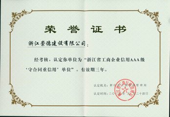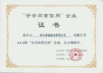浙江省AAA級守合同重信用單位2013